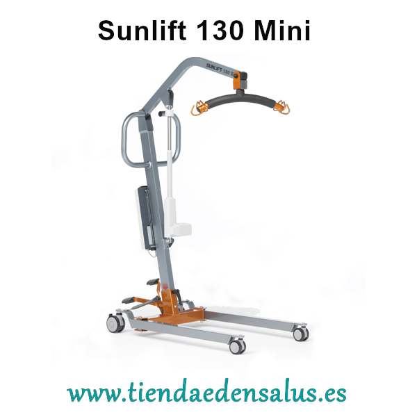 Grúa para traslado en elevación de personas dentro del domicilio. Funciona con baterías recargables. Base con apertura de patas. Para usuarios de un peso hasta 135Kg o 150Kg dependiendo del modelo.